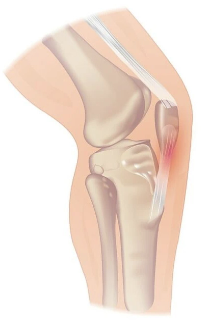 - Tendinopatía Distal del tendon rotuliano: localizado a nivel de la inserción tibial, cerca de la tuberosidad tibial anterior (TTA). En este caso, suele ser secundario a una enfermedad que acontece entre los 10-14 años por sobreuso en una etapa de la vida en la que no se ha osificado por completo el esqueleto, denominada síndrome de Osgood-Schlatter. Esto genera calcificaciones a nivel de la TTA, que no son más que fragmentos de cartílago que se desprendieron de la tibia durante el crecimiento y quedarán englobados por el tendón facilitando el roce durante distintas actividades.