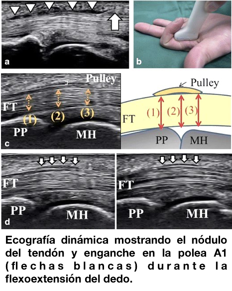Los resultados con la intervención ultramínimamente invasiva ecoguiada son excelentes, con menor cicatriz y dolor postoperatorio y una recuperación más rápida aunque en ocasiones puede realizarse una liberación incompleta de la polea.