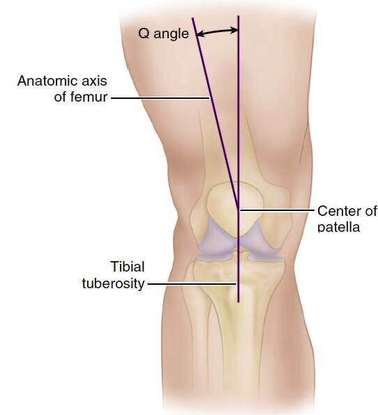 - Angulo Q del cuádriceps aumentado (normal 15º): las caderas anchas (coxa vara), rodillas en valgo o caminar con rotación externa de los pies (torsión tibial externa) aumentan el ángulo entre el cuádriceps y el tendón rotuliano, creando una tendencia a que la rótula se salga hacia fuera y provoque dolor por hiperpresión.